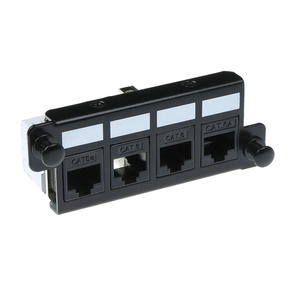 ACT Adapterplaat voor 4 x keystone UTP. Type product: adapter, Kleur van het product: Zwart. Aantal per verpakking: 1 stuk(s)