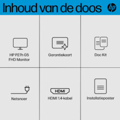 | – 68,6 cm (27″) LCD IPS – Full HD 1920 x 1080 Pixels 16:9 – 75 Hz 5 ms 250 cd/m² 1000:1 – Knippervrije technologie – D 16 kWu 21 W |