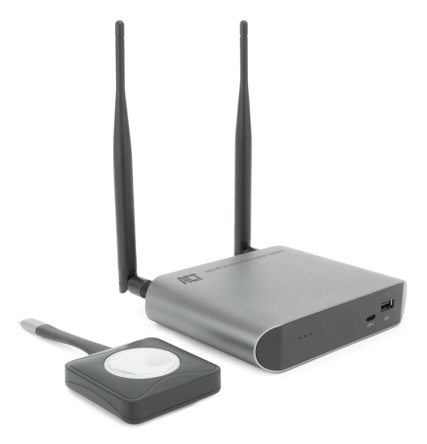 Het AC7960 Aero 4K draadloos presentatiesysteem wordt out-of-the-box geleverd als een complete starter set met daarin: