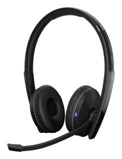 On-ear, dubbelzijdige Bluetooth© headset met USB-dongle, UC-geoptimaliseerd en gecertificeerd voor Microsoft Teams. Belt u voor uw werk via meerdere apparaten? Kies dan een draadloze headset die aansluit bij uw dynamische werkstijl op de hybride werkplek.