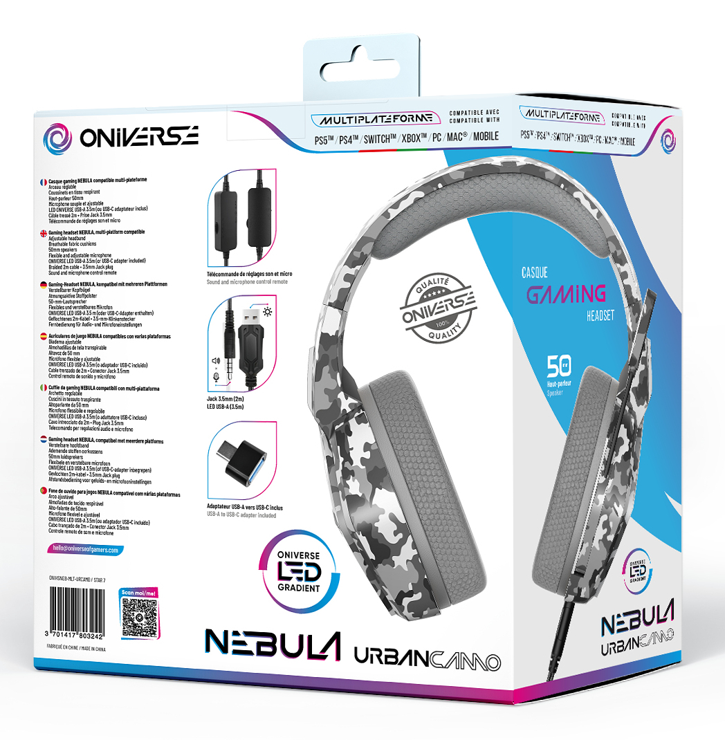 Oniverse Nebula Headset Bedraad Hoofdband Gamen USB Type-A Camouflage