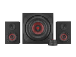 | – 60 W 2.1 kanalen – Aantal satellieten: 2 2-weg 30 W – Actieve subwoofer – Bedraad en draadloos Bluetooth 4.2 – Op afstand bedienbaar Volumeregeling: Draaiknop – Zwart, Rood |