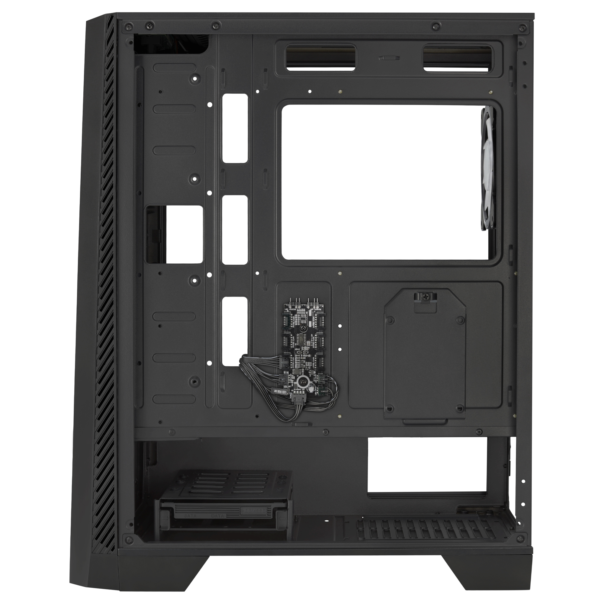 | – Midi Tower PC – ATX, micro ATX, Mini-ITX – Ondersteunde HDD-groottes: 2.5,3.5″ SSD-vormfactor: 2.5″ – Aantal 2.5″ bays: 5 Aantal 3.5″ bays: 2 – Belichting Blauw, Groen, Rood – ABS, SPCC, Gehard glas – Zwart |