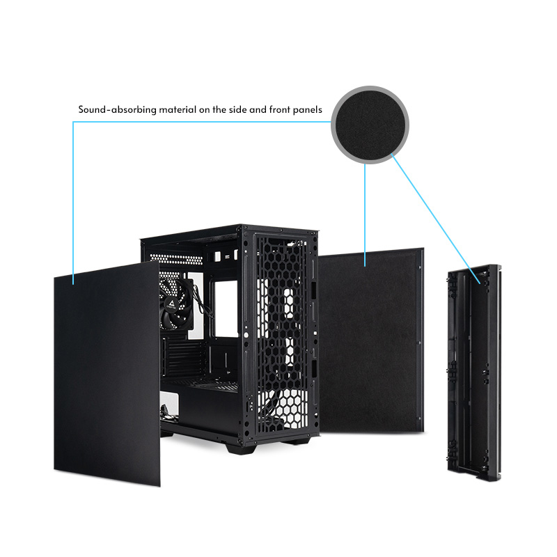 | – Mini Tower PC – micro ATX, Mini-ITX, uATX – Ondersteunde HDD-groottes: 2.5,3.5″ – Aantal 2.5″ bays: 2 Aantal 3.5″ bays: 1 – Anti-stof filter – Zwart |