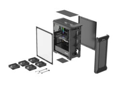 | – Midi Tower PC Gamen – ATX, micro ATX, Mini-ITX – Ondersteunde HDD-groottes: 2.5,3.5″ – Aantal 2.5″ bays: 7 Aantal 3.5″ bays: 2 – Zijraam Geharde glaspla(a)t(en) Anti-stof filter – Staal, Gehard glas – Zwart |