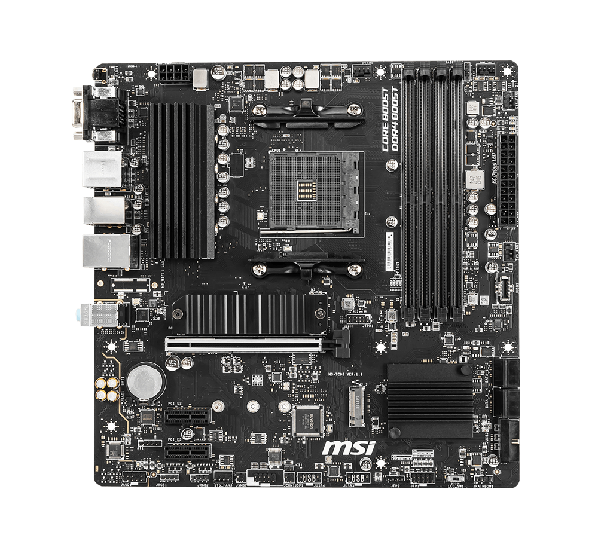 | – AMD Socket AM4 AMD Ryzen 3000 Series – PC micro ATX AMD B550 7.1 kanalen – DDR4-SDRAM 4 DIMM Maximum intern geheugen: 128 GB – HDD & SSD SATA III – Clear CMOS jumper – Gigabit Ethernet |