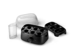Eieren precies zo gekookt als u het graag hebt. Zachte, halfzachte, hardgekookte en gepocheerde eieren perfect gekookt. Het compacte, praktische design biedt voldoende capaciteit voor het hele gezin, neemt weinig ruimte in beslag en is gemakkelijk schoon te maken.