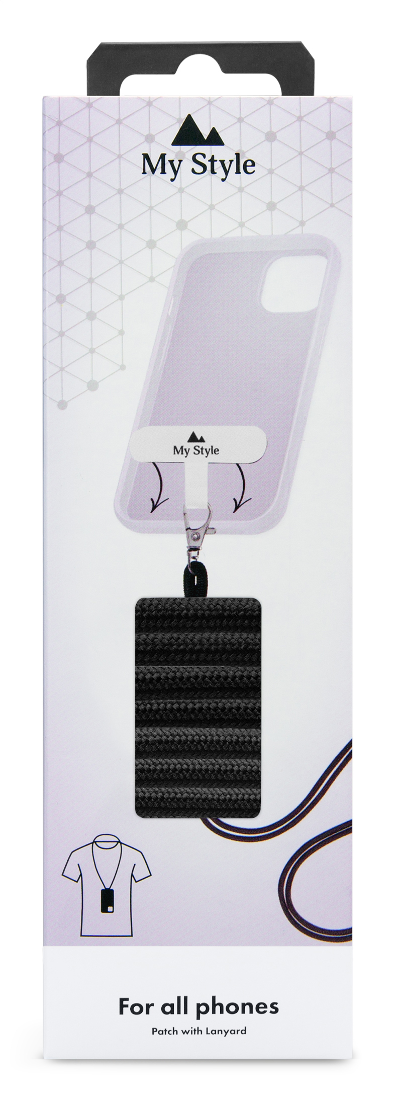 De My Style Lanyard is in combinatie met al jouw favoriete hoesjes te gebruiken. De pad, gemaakt van nylon, plaats je eenvoudig in je favoriete case. Het oog aan de onderzijde van de pad haal je door de uitsparing van de laadconnector om vervolgens daarna jouw toestel in de case te plaatsen. De lanyard (150cm), die in diverse kleuren verkrijgbaar is, heeft een stevige metalen karabijn die je door het oog van de pad kan halen. Zo heb jij jouw toestel altijd bij je, heb je het ook snel bij de hand en wanneer jij je toestel niet nodig hebt heb je beide handen helemaal vrij.