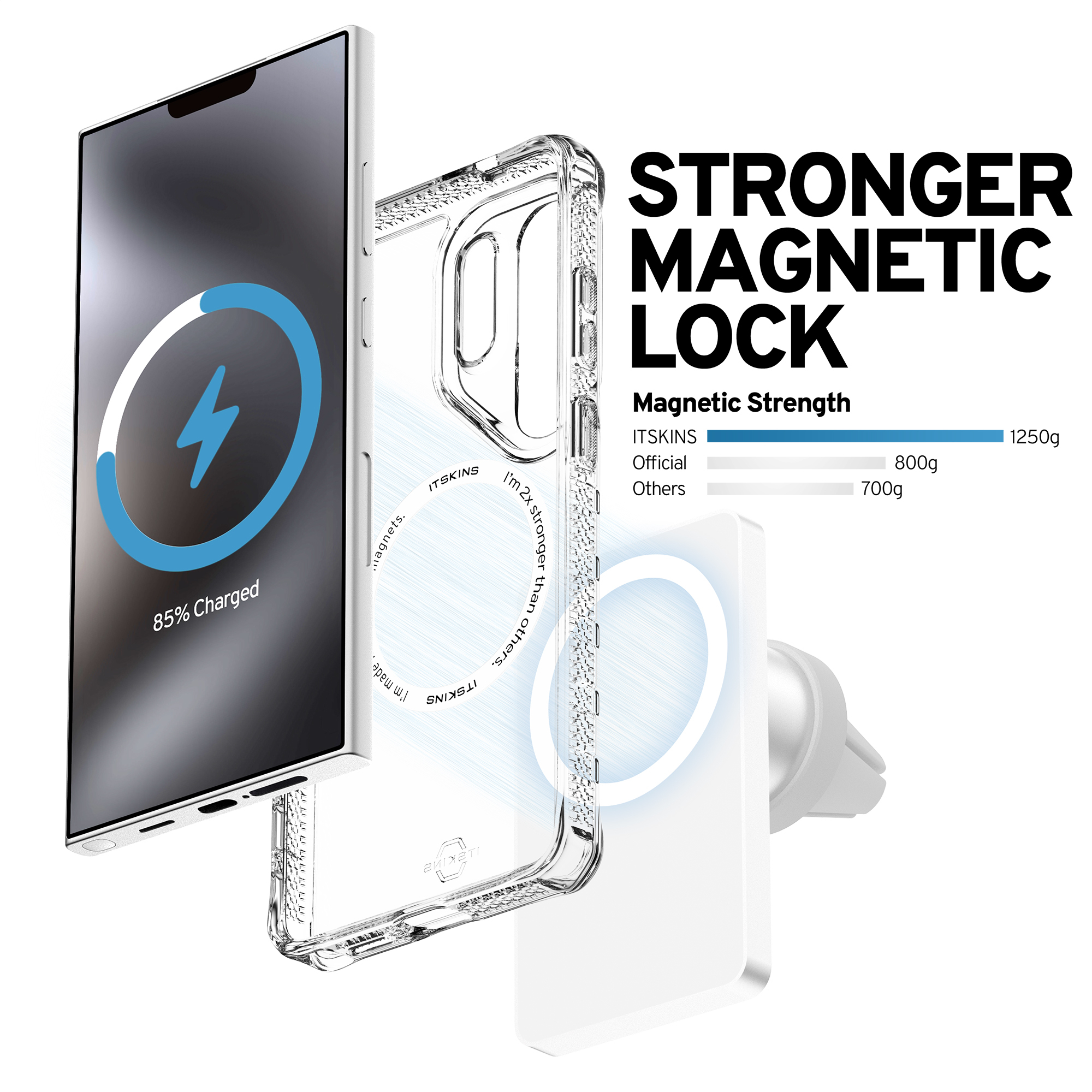Met de ITSKINS Level 2 HybridMagClear_R Case krijg je de perfecte combinatie van stijl, functionaliteit en bescherming. Bescherm je telefoon tegen de elementen en geniet van de voordelen van MagSafe-compatibiliteit, terwijl je bijdraagt aan een duurzamere wereld.