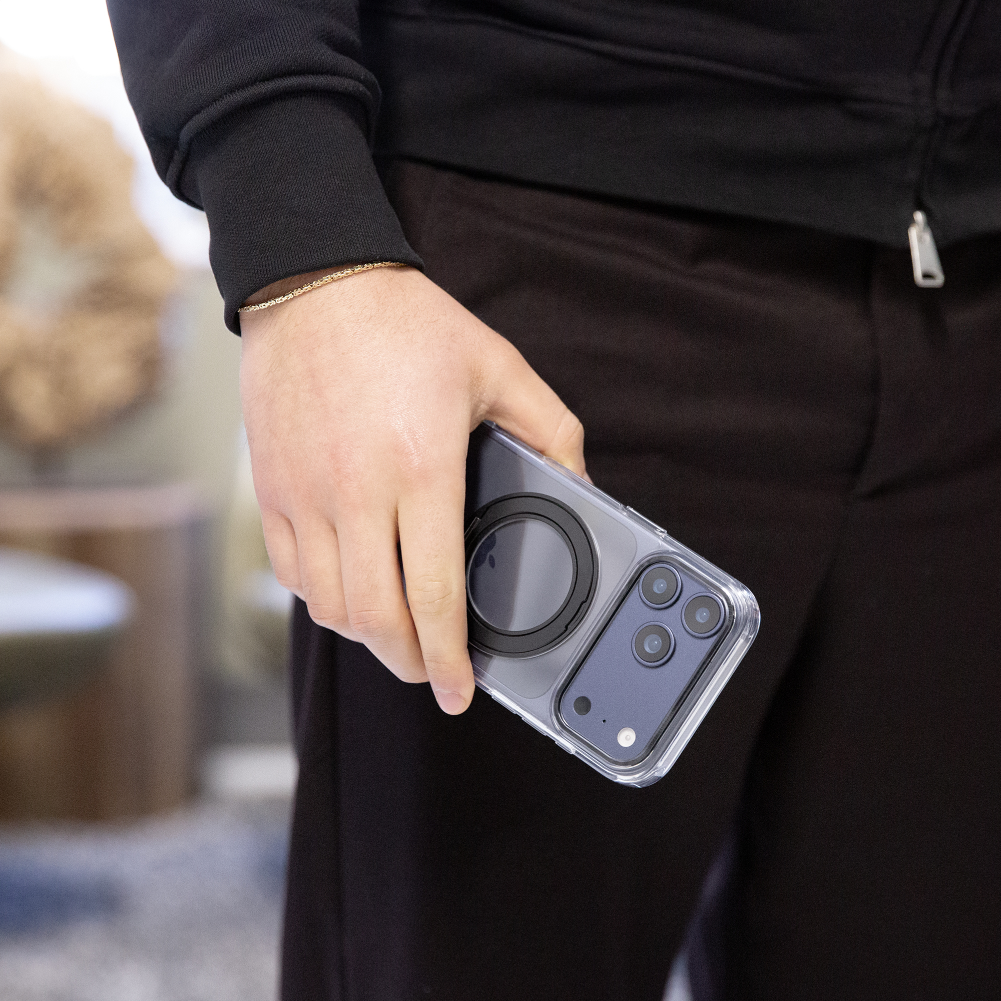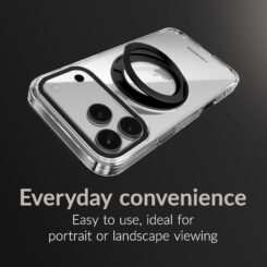 De 360 graden draaibare ring aan de achterzijde maakt het eenvoudig om je smartphone comfortabel vast te houden of neer te zetten voor handsfree gebruik. Ideaal voor videobellen, het bekijken van content of navigatie onderweg. Dankzij de stevige magnetische bevestiging is de ring stabiel in elke gewenste positie.