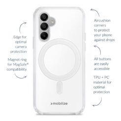 Bij de vernieuwde Mobilize Naked Protection Case komt het beste van een beschermende en Magsafe compatible case samen. De achterzijde van de case is van stevig kunststof wat jouw mobiel beschermt tegen krassen, maar zonder afbreuk te doen aan het design van jouw telefoon. De randen van de case zijn juist van flexibel materiaal. Zo kunnen vallen en stoten goed worden opgevangen en blijft jouw telefoon langer schadevrij. Het zorgt bovendien voor een betere grip zodat jij jouw mobiel minder snel laat vallen.