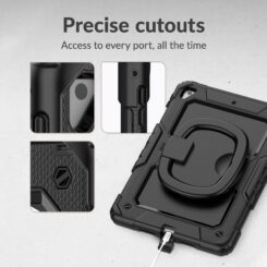 Siliconen pluggen voorkomen dat connectoren en poorten beschadigd raken door externe elementen of dat hier stof en zand in gaan ophopen. De meegeleverde schouderriem maakt het gemakkelijk om je tablet overal mee naartoe te nemen, ideaal voor onderweg of op locatie.