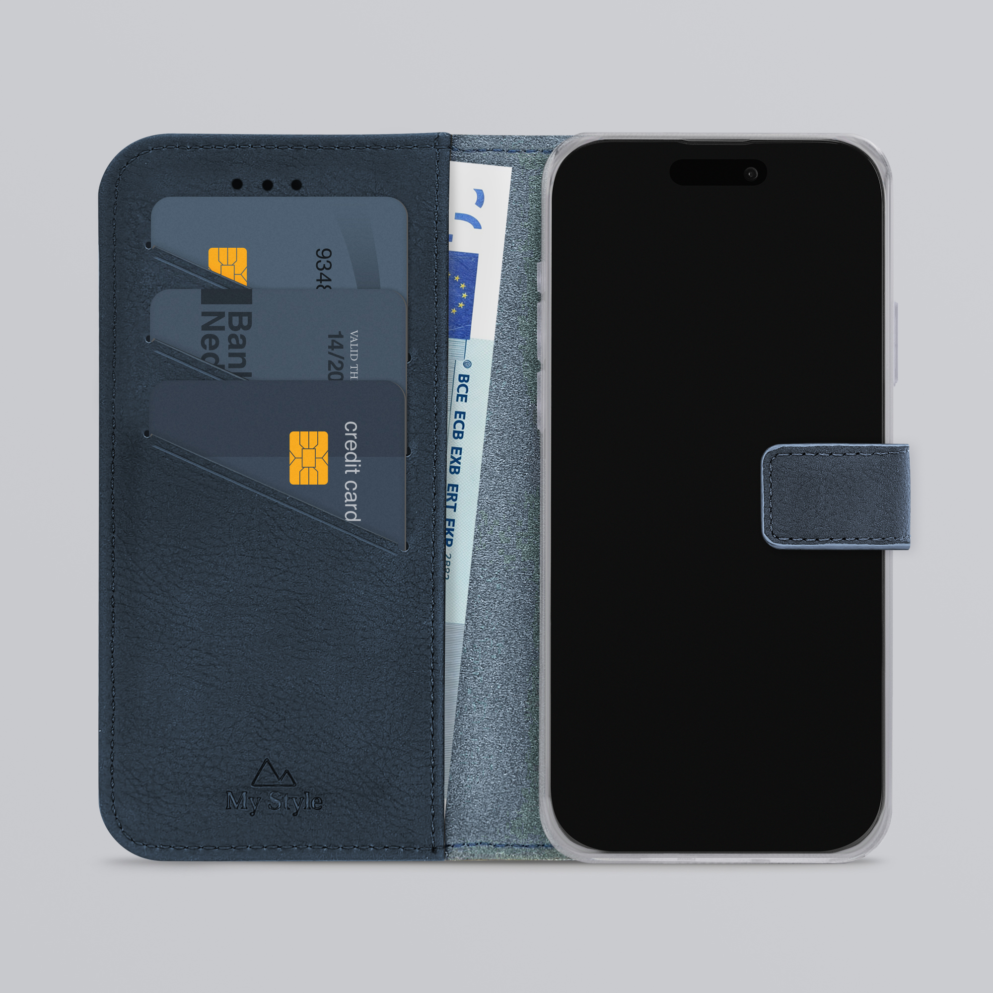 Binnenin de My Style Flex Wallet zitten drie vakjes voor uw ID-kaart, bankpas of creditkaart. Daaronder vindt u een groter opbergvak met genoeg ruimte voor bijvoorbeeld papiergeld.