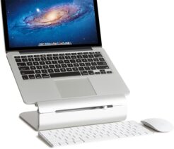 De stand is gemaakt van geanodiseerd aluminium en fungeert als koelelement voor jouw laptop.