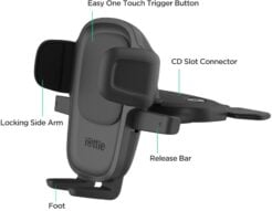 De iOttie Easy One Touch 5 CD Slot Mount klemt jouw smartphone automatisch vast wanneer je het in de houder plaatst! Een knop wordt ingedrukt wanneer het toestel in de houder zit en dat zorgt ervoor dat de armen het toestel stevig vastklemmen.