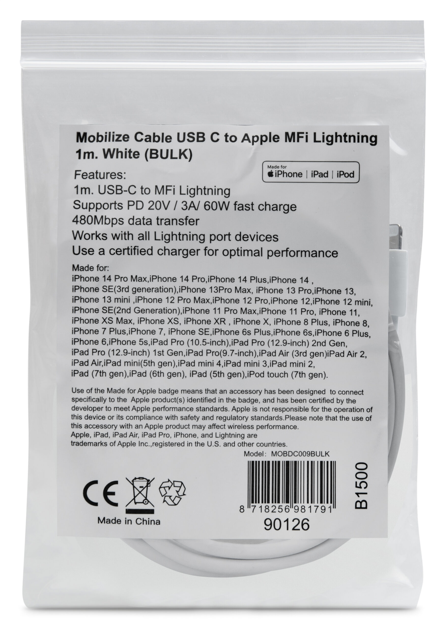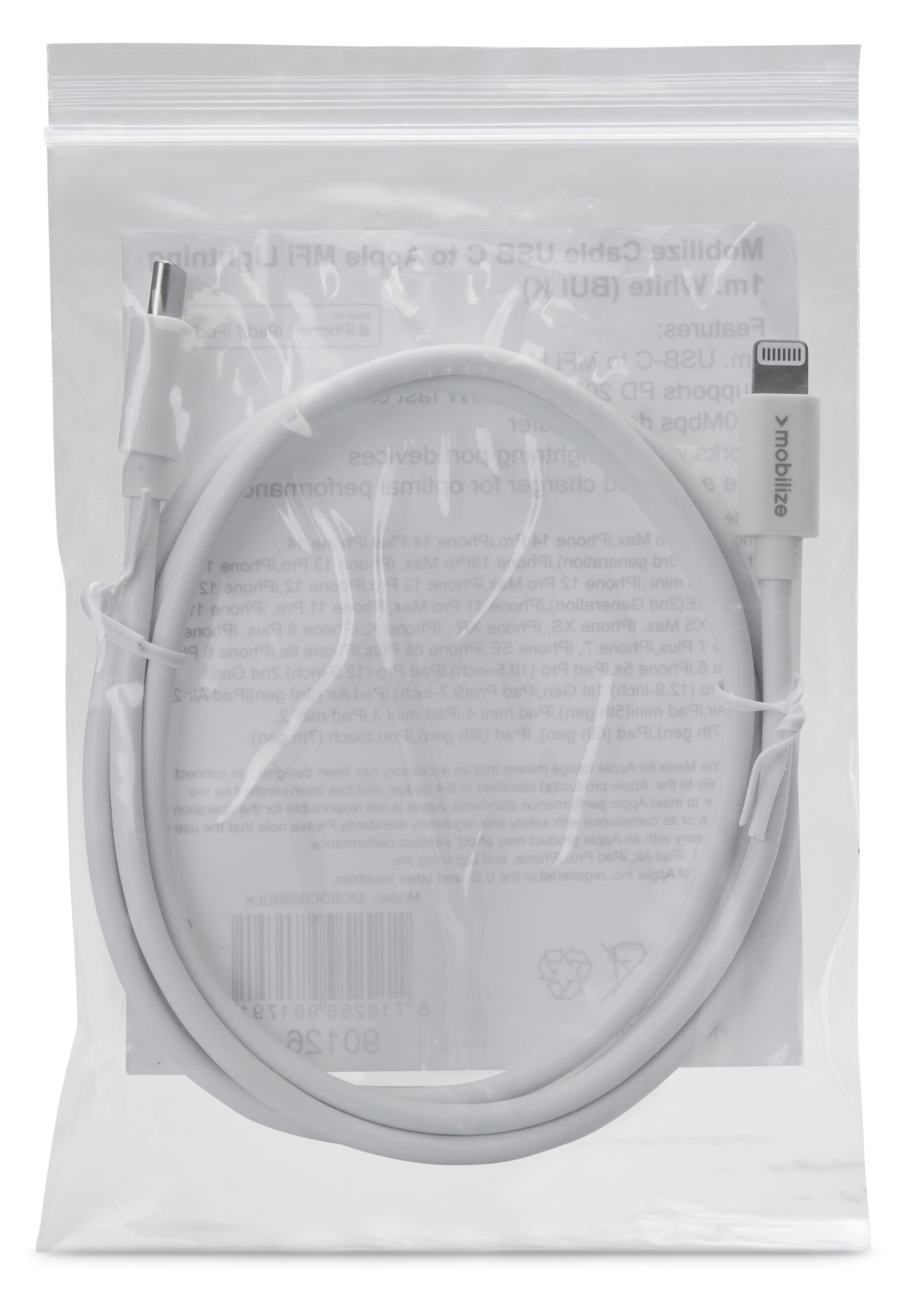 Een Mobilize USB-C to Apple Lightning Cable is een stevige kabel van één meter lang. Je kan met deze kabel moeiteloos al jouw Apple apparaten met een Apple Lightning aansluiting opladen of synchroniseren. Dankzij de MFi certificering ben je er van verzekerd dat de kabel het altijd zal blijven doen, ook na het updaten van je software!
