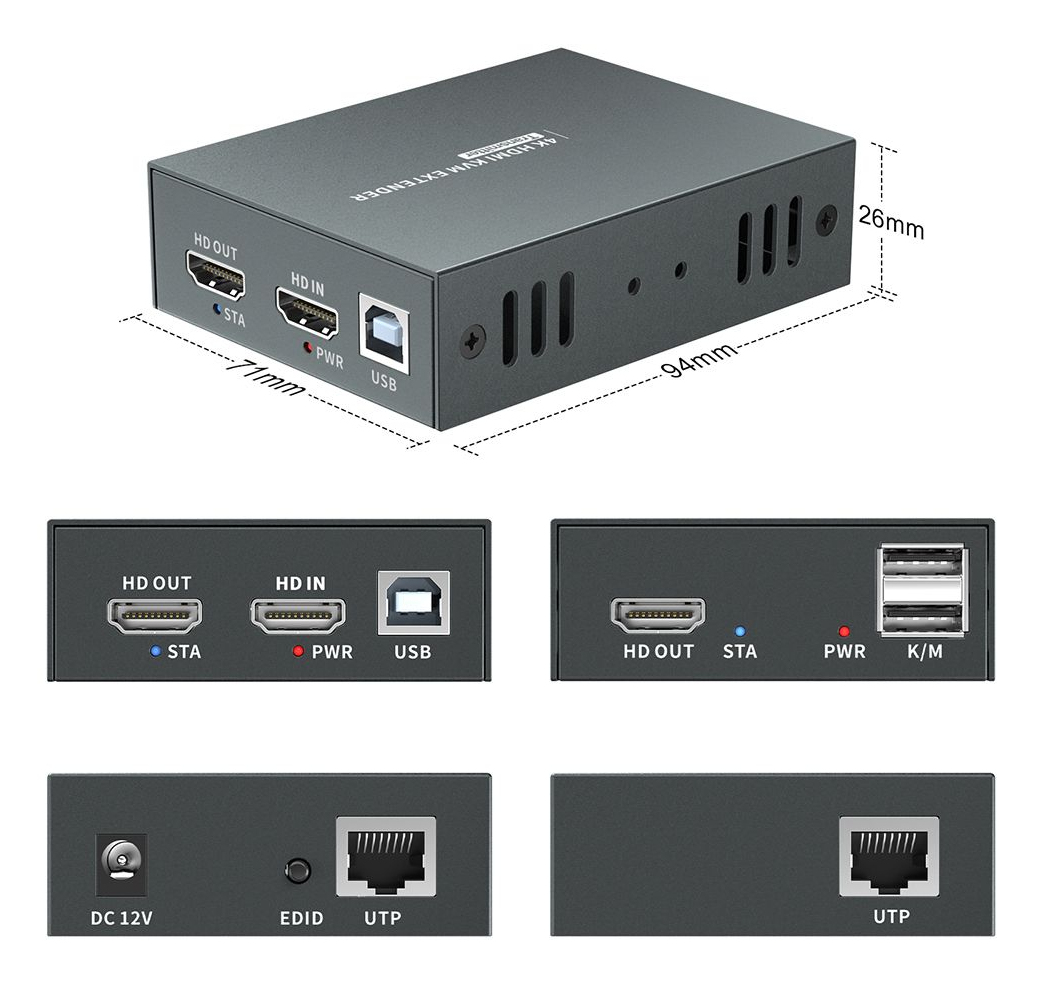 | – AV-zender & ontvanger 3840 x 2160 Pixels Zwart – Maximaal bereik: 100 m – 60 Hz – HDCP – Bedraad – Type stroombron: DC |
