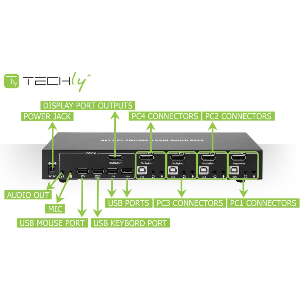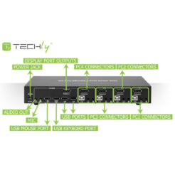 Techly IDATA DP-KVM4 KVM-switch Rack-montage Zwart