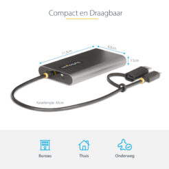 | – USB-versie: 3.2 Gen 1 (3.1 Gen 1) USB Type-C Mannelijk – HDMI-uitgang – Aantal displays ondersteund: 2 – 3840 x 2160 Pixels – Grijs |