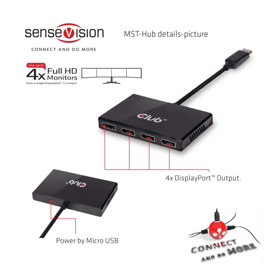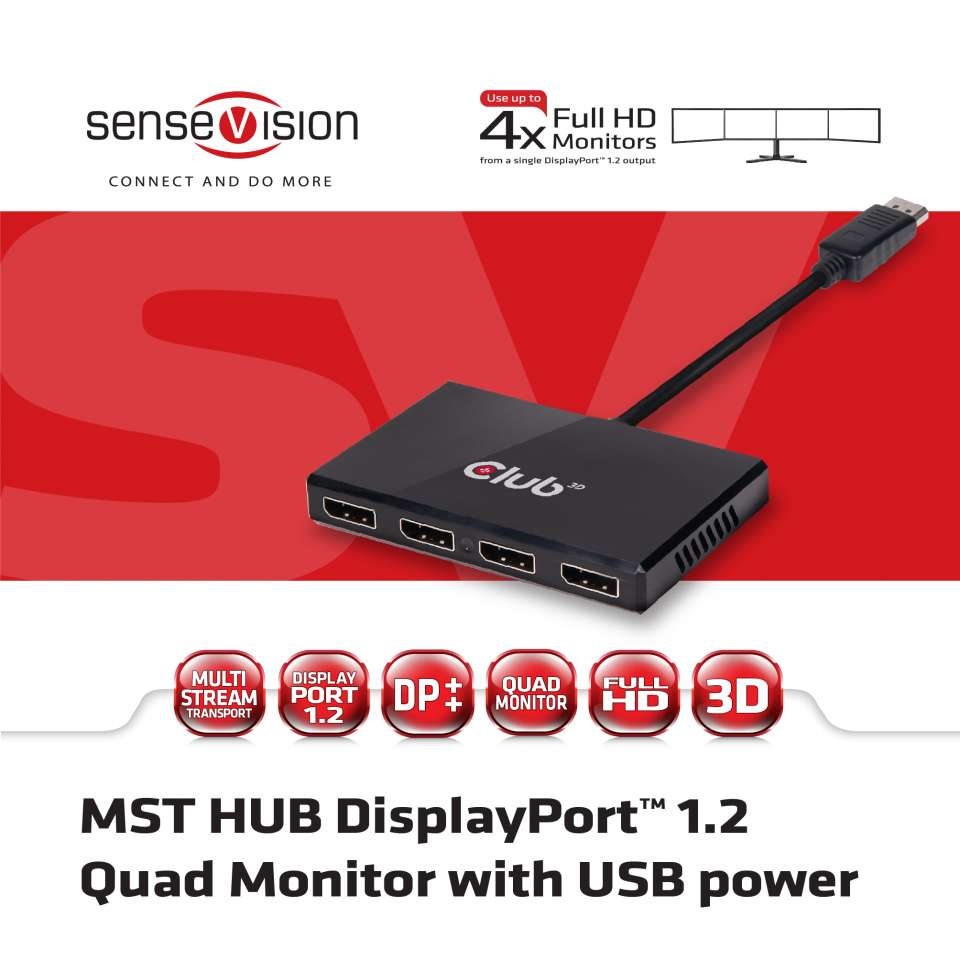 CLUB3D Multi Stream Transport Hub DisplayPort 1.2 Quad Monitor USB Powered
