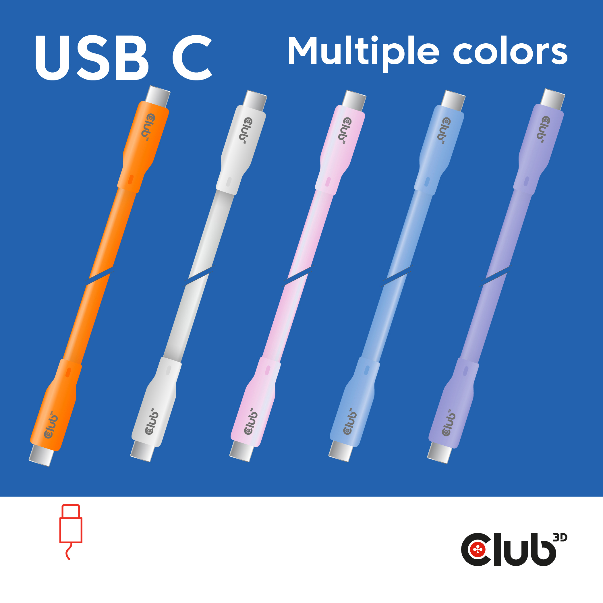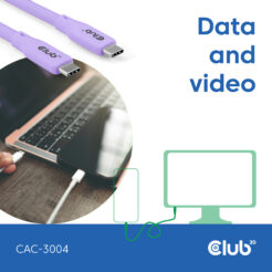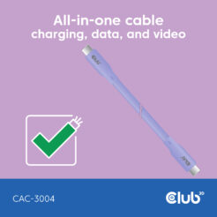 CLUB3D USB C oplaadkabel paars siliconen & tangle-free