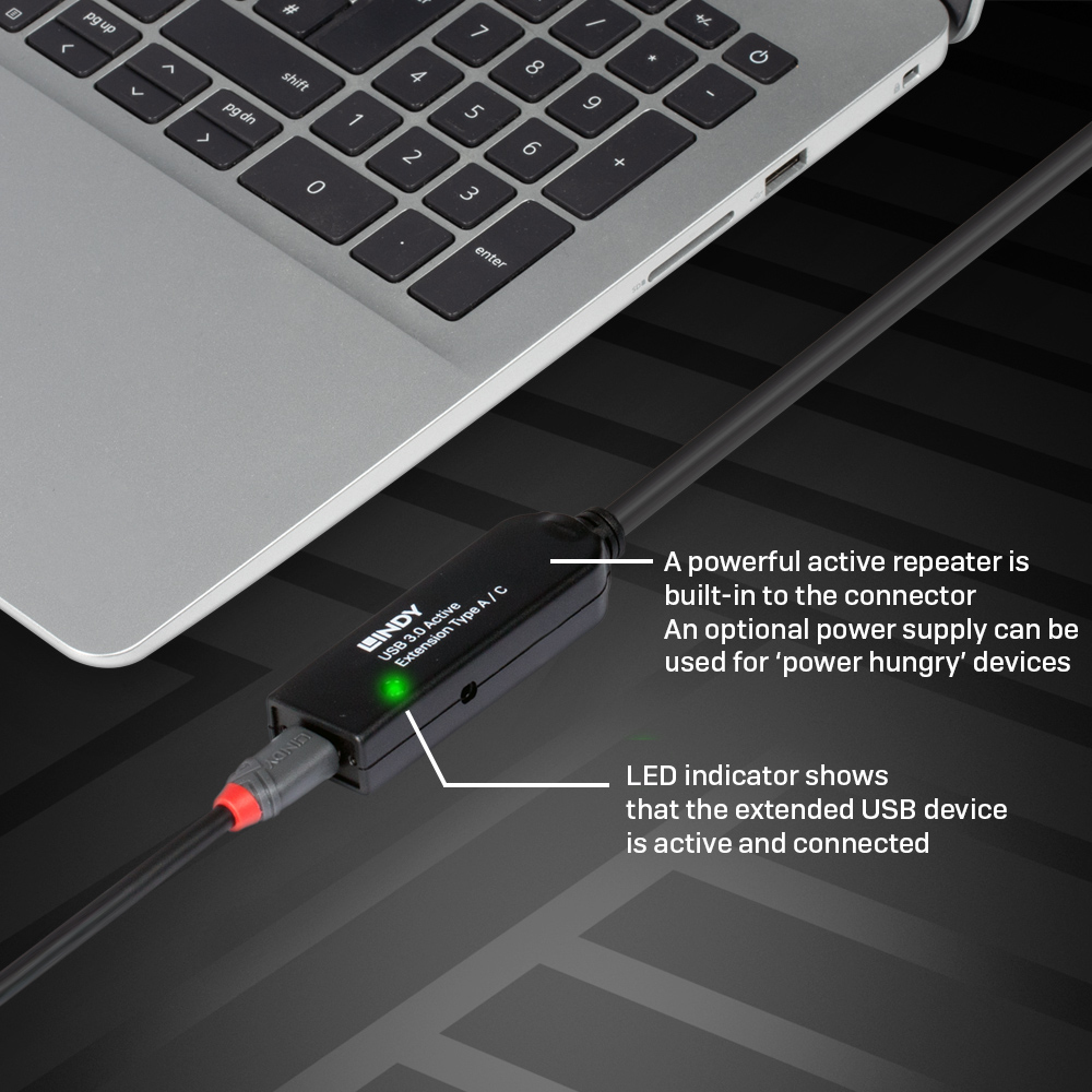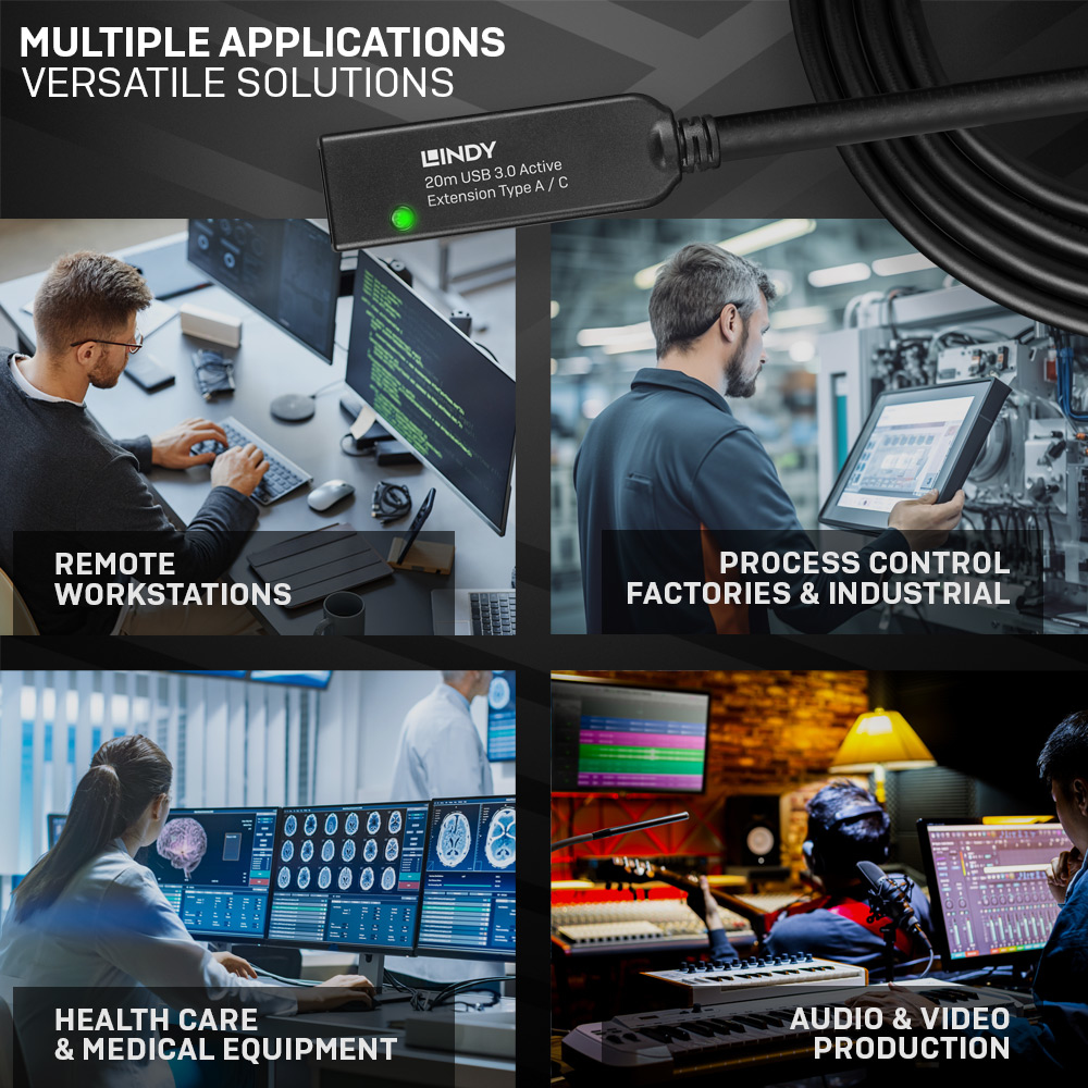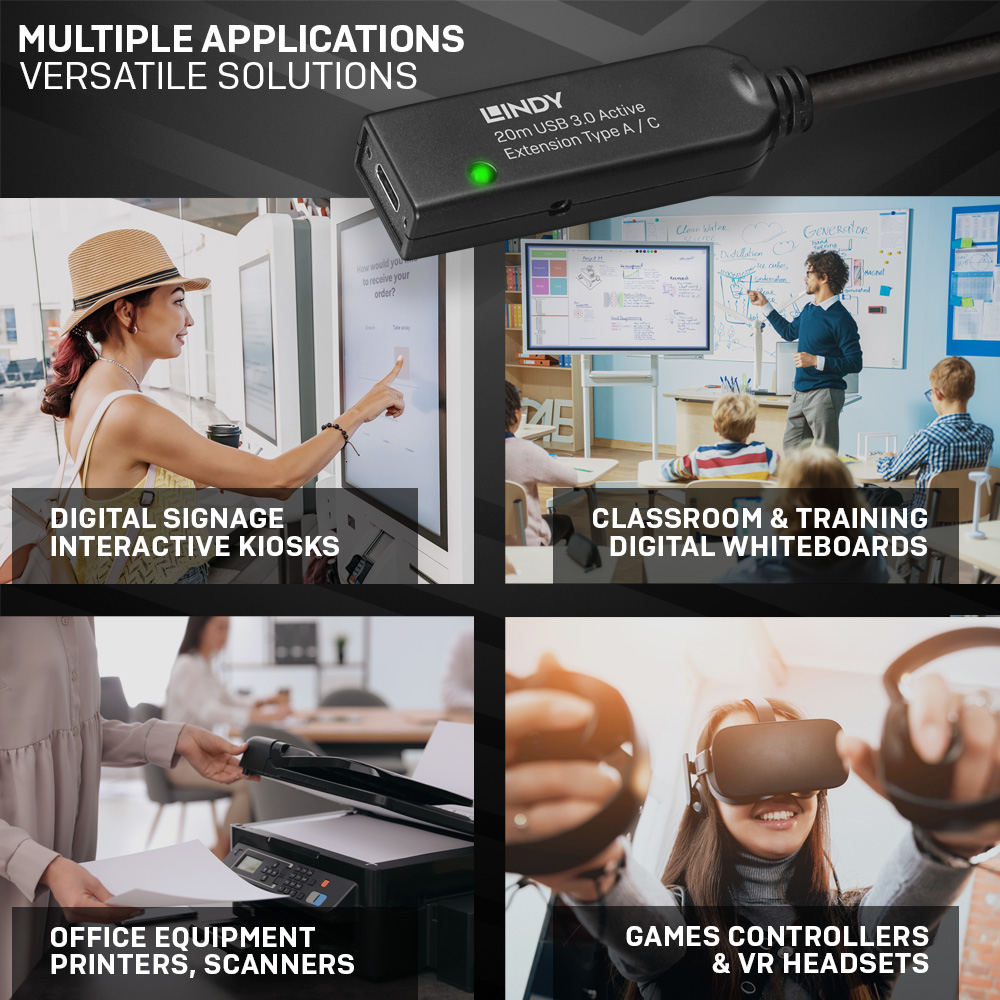 Lindy 43375 USB-kabel USB 3.2 Gen 1 (3.1 Gen 1) 20 m USB A Zwart