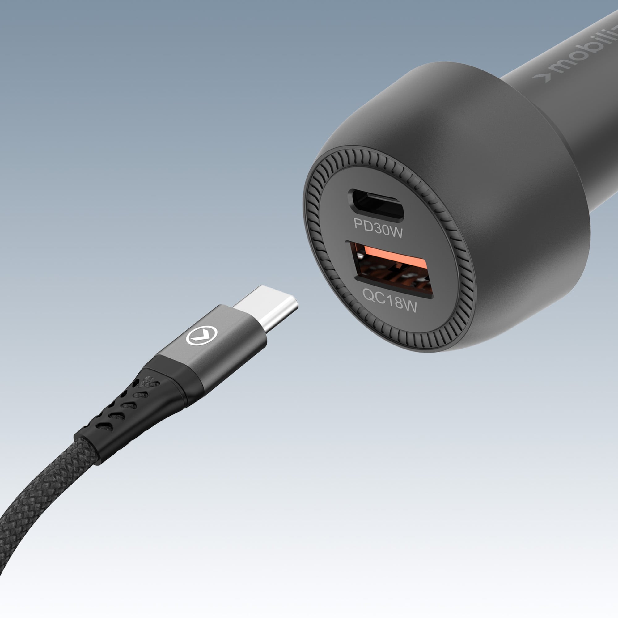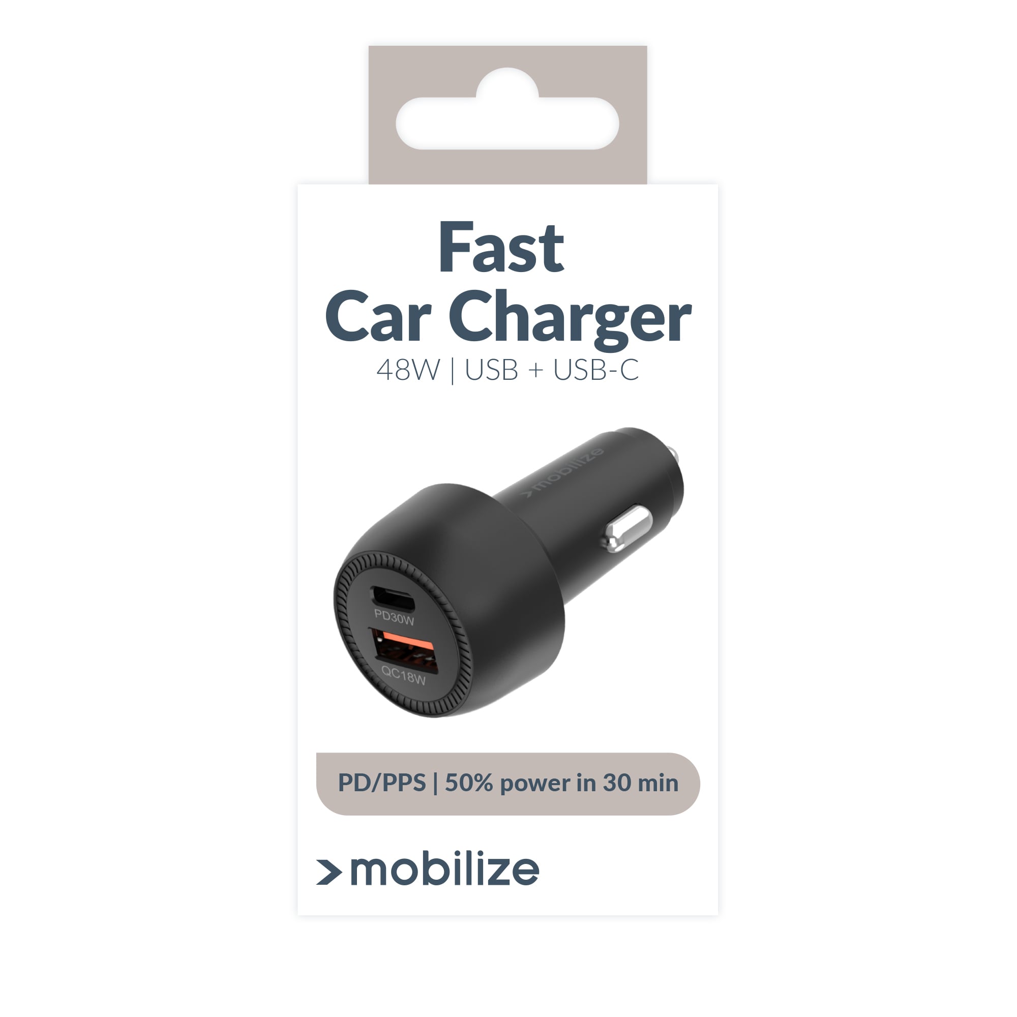 De Mobilize Car Charger is een uiterst compacte en krachtige lader voor in de auto. Met 48W PD/PPS en Quick Charge 3.0 zorgt deze lader ervoor dat jouw apparaten snel en veilig worden opgeladen. De lader beschikt over zowel een USB-A als een USB-C aansluiting, waardoor je vrijwel elke kabel kunt aansluiten. Met deze lader laad je je toestel in minder dan 30 minuten op van 0% naar 50%.