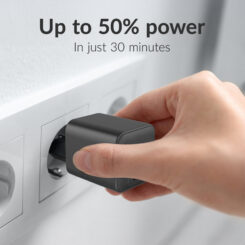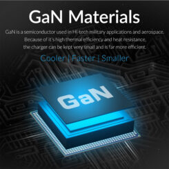 GaN staat voor Gallium Nitride, dit materiaal wordt in halfgeleiders gebruikt die nodig zijn voor de ontwikkeling van laders. Met halfgeleiders op basis van GaN gaat tot 40% minder stroom verloren en doordat ze tot wel 15x kleiner zijn dan standaard halfgeleiders kun je krachtigere lader produceren in een veel kleinere behuizing!