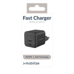 Ontmoet de Mobilize Wall Charger, jouw nieuwe, USB-C lader voor het stopcontact. Met twee USB-C poorten en een totaal vermogen van 45W, is deze lader een krachtig accessoire voor al je apparaten. Deze slimme en veilige lader maakt gebruik van PD/PPS technologie, waarmee je jouw apparaat in minder dan 30 minuten van 0% naar 50% kunt opladen.