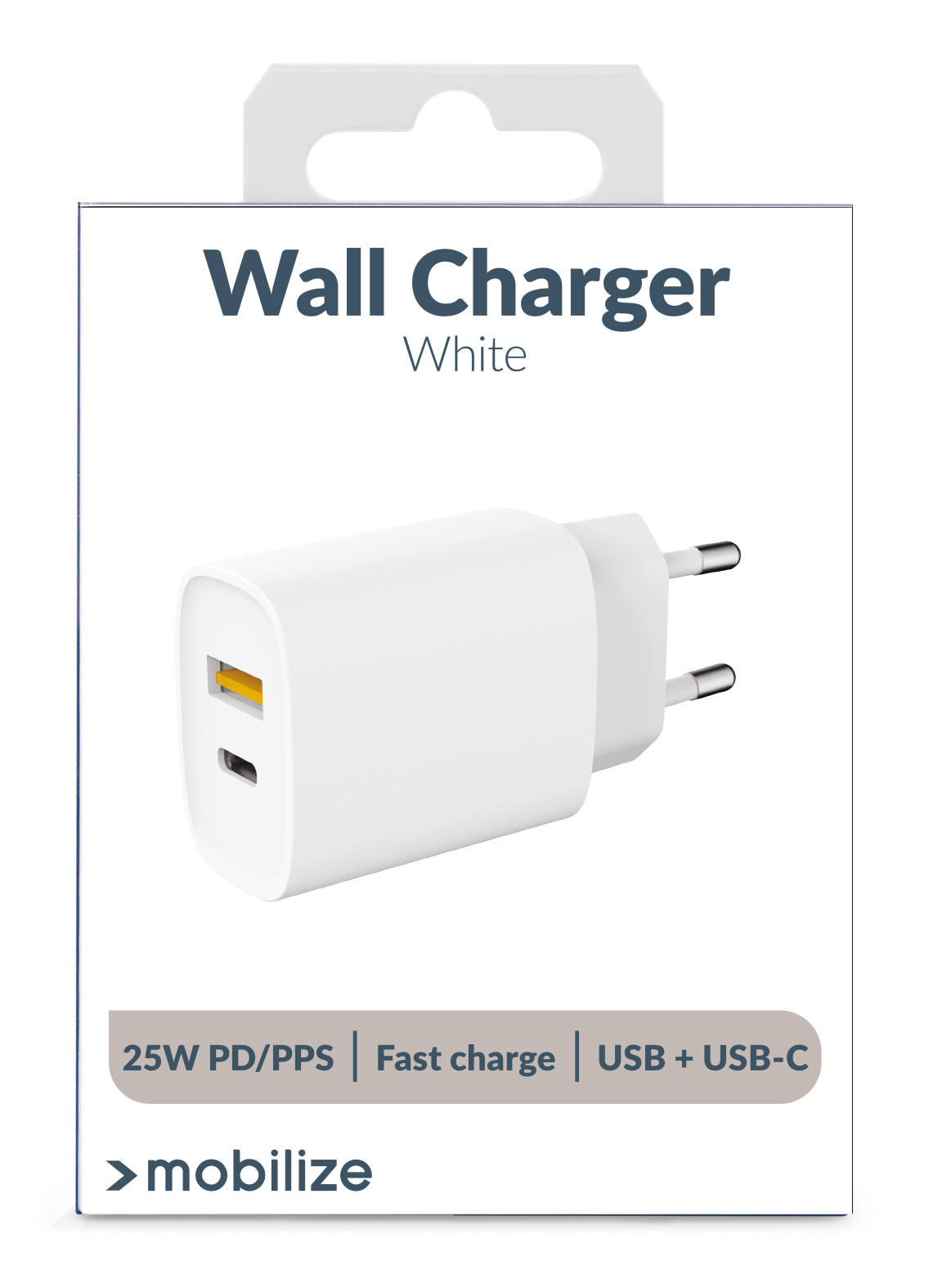 De Mobilize Mobilize Wall Charger USB-C + USB 25W charger is een uiterst complete charger voor thuis, kantoor of op vakantie. Met 25W PD/PPS en Fast Charge is het een snelle lader die altijd precies levert wat jouw toestel vraagt. Wanneer je één toestel laadt zij het via USB-C of USB-A dan wordt jouw toestel altijd met maximaal 25W opgeladen wanneer jouw toestel daar om vraagt. Ga je twee toestellen tegelijk laden en beide poorten gebruiken dan is er maximaal 15W beschikbaar verdeelt over de twee poorten.