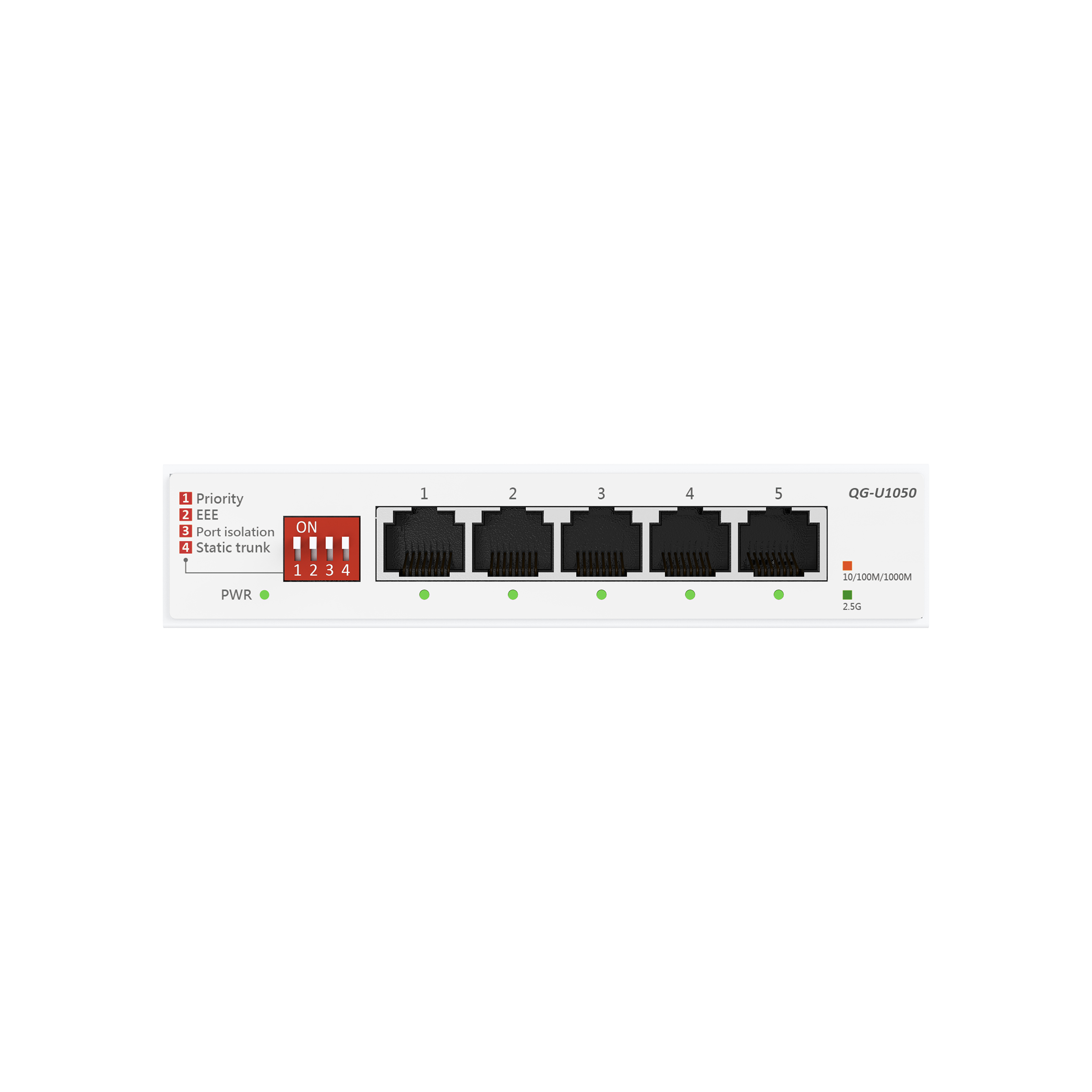 | – Unmanaged – Aantal basis-switching RJ-45 Ethernet-poorten: 5 – Cat5e 100BASE-TX, 1000BASE-T, 2500BASE-T – MAC-adrestabel: 16000 entries – DC |