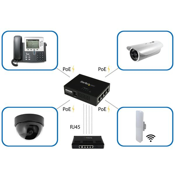 StarTech.com 4-poorts gigabit midspan PoE+ injector 802.3at/af