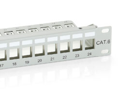 | – Aantal poorten: 24 – Cat6 – AWG draad omvang: 18 – 1U – Verbeterd kabelbeheer – Grijs |
