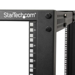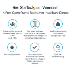 StarTech.com 4-Post 25U Mobiel Open Frame Server Rack, 19″ Patchkast met Wielen en 4 Stijlen, Open Serverkast met Verstelbare Diepte voor Computer / AV / Netwerk Apparatuur – Wielen, Stelvoeten of Vloermontage