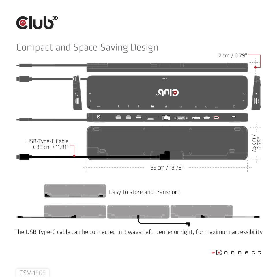 CLUB3D USB Gen1 Type-C Triple Display DP1.4 Alt mode Smart PD3.0 Charging Dock with 100 Watt Power Supply