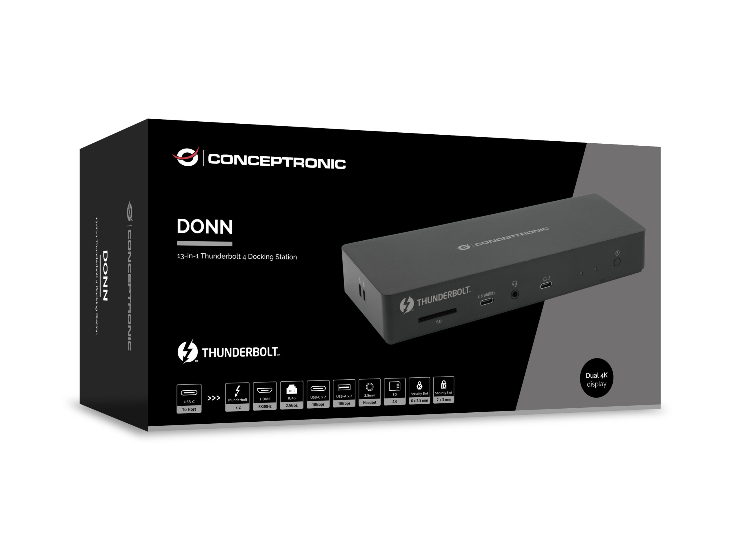 Conceptronic DONN30B laptop dock & poortreplicator Bedraad Thunderbolt 4 Zwart