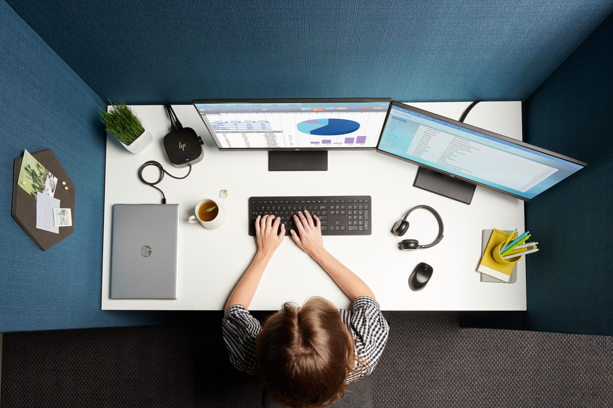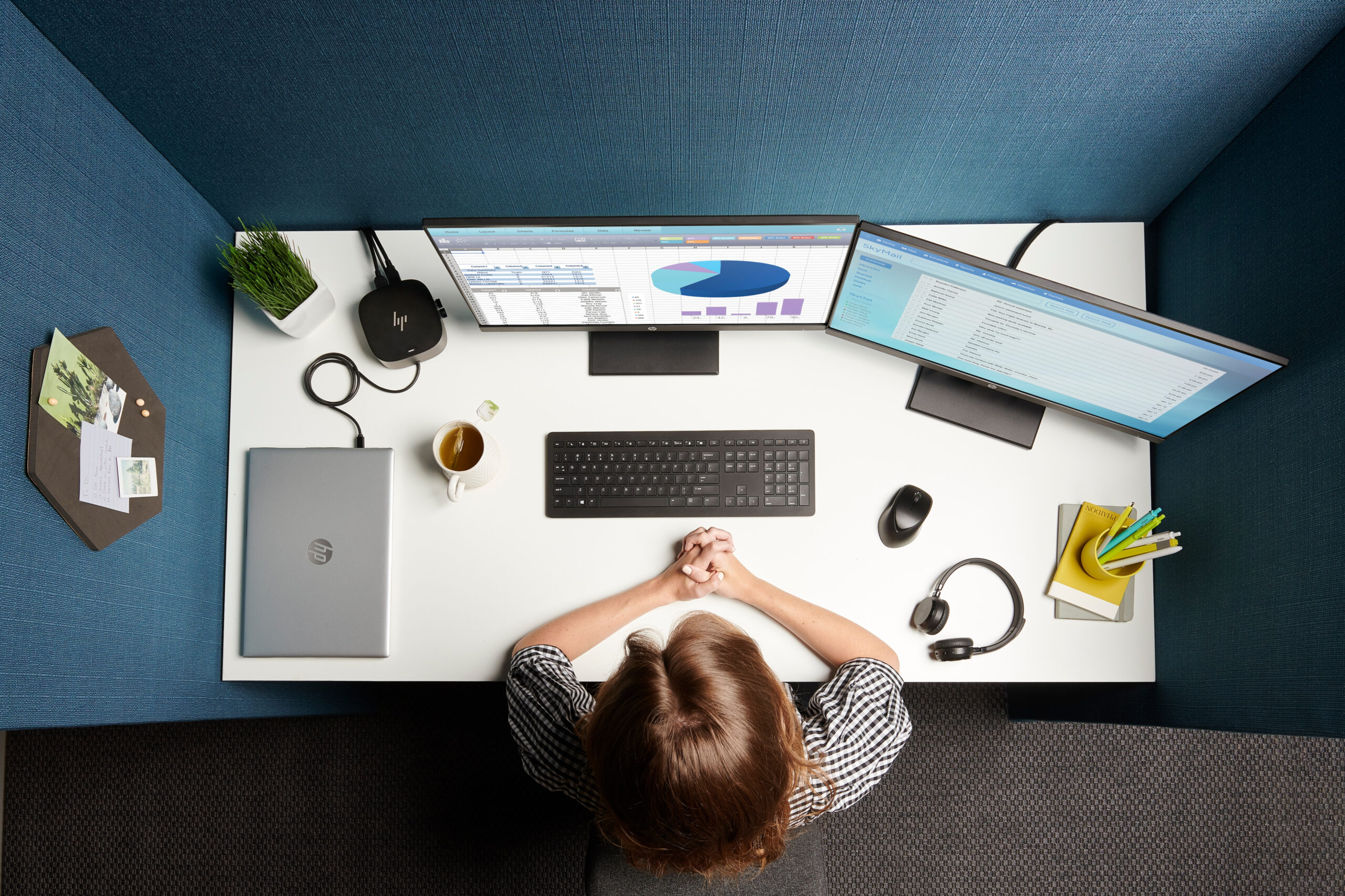 Sluit je laptop met USB-C aan op je schermen, accessoires en bekabelde netwerk met de veelzijdige, elegante en ruimtebesparende HP USB-C Dock G5.