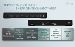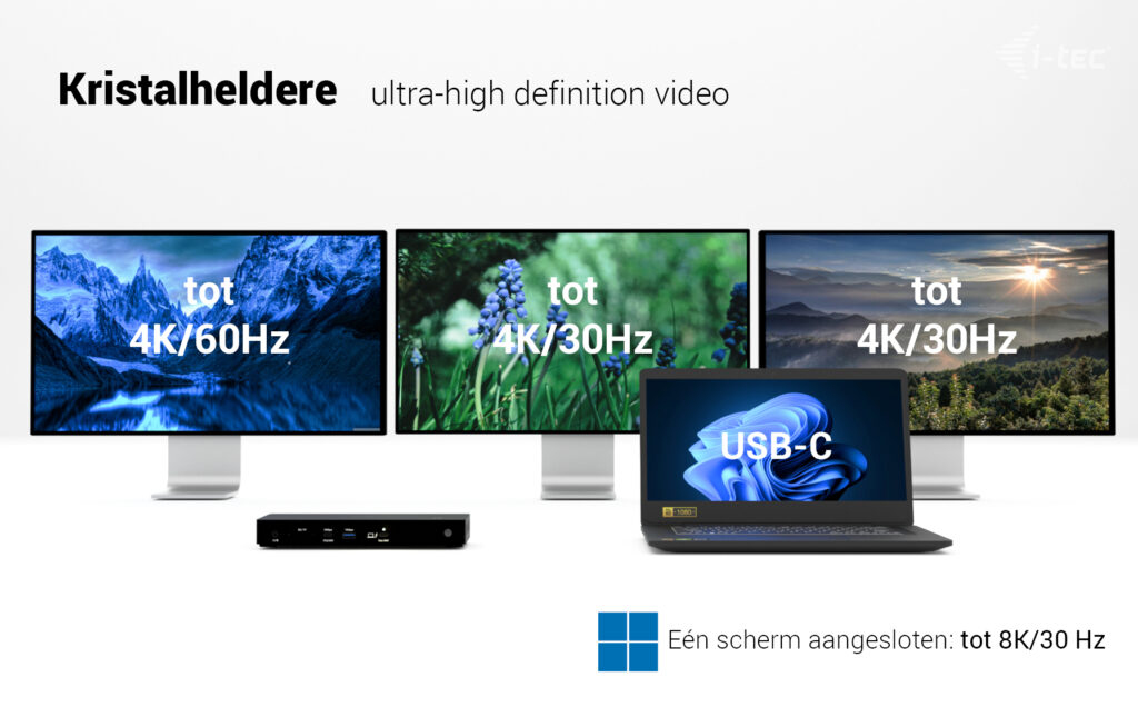 Ultra-hoge prestaties, ultrasnelle gegevensoverdracht en ondersteuning voor resoluties tot 8K/60 Hz. Een van de krachtigste i-tec dockingstations op de markt!