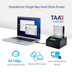 StarTech.com Single Bay Hard Drive Wisser, Standalone HDD/SSD Sanitizer/Eraser, USB 3.0 naar SATA II (3 Gbps), 9 Wismodi, LCD Display, Hard Disk Secure Erase Dock, DB-9 Printer Poort, NIST/DOD & TAA Compliant