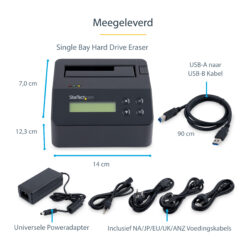 | StarTech.com Single Bay Hard Drive Wisser, Standalone HDD/SSD Sanitizer/Eraser, USB 3.0 naar SATA II (3 Gbps), 9 Wismodi, LCD Display, Hard Disk Secure Erase Dock, DB-9 Printer Poort, NIST/DOD & TAA Compliant. Type product: Schijfstationwisser, Soort apparaat: Optische schijf, Kleur van het product: Zwart. Breedte: 123 mm, Diepte: 140 mm, Hoogte: 70 mm. Gewicht verpakking: 2 kg, Diepte verpakking: 376 mm, Breedte verpakking: 189 mm. Certificering: CE, FCC, TAA, REACH. Hoeveelheid per (buitenste) hoofdverpakking: 7 stuk(s), (Buitenste) hoofdverpakking lengte: 469 mm, (Buitenste) hoofdverpakking breedte: 396 mm | SKU: SDOCK1EU3P EAN: 0065030861137 Downloadbare informatie Download leaflet *Aan onjuist vermelde foto’s, specificaties en prijzen kunnen geen rechten worden ontleend |