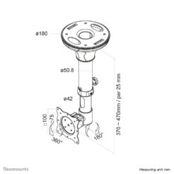 Met deze Neomounts plafondsteun, model FPMA-C025BLACK bevestigt u een flatscreen aan het plafond.