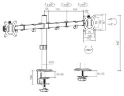 “De equip 650167 Dual Monitor Desk Mount Bracket is een veelzijdige montageoplossing voor monitoren van 17 inch tot 32 inch met een LCD/LED monitor. De beugel heeft verstelbare scharnierpunten, zodat je je monitor kunt kantelen, draaien en roteren voor ergonomische kijkposities.