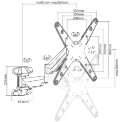 | – Maximale gewichtscapaciteit: 30 kg – Minimale schermgrootte: 53,3 cm (21″) Maximale schermgrootte: 152,4 cm (60″) – Aantal displays ondersteund: 1 – Montagewijze: Muur – Montage interface compatibiliteit (max): 400 x 400 mm – kantel aanpassingen – Kunststof, Staal Zwart |