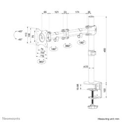 Met deze Neomounts monitorarm, model NM-D135BLACK, bevestigt u een flatscreen aan het bureau via een bureauklem of bureaudoorvoer.