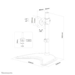 Met deze Neomounts monitorsteun, model NM-D335BLACK, bevestigt u een flatscreen aan het bureau via de bureauklem of bureaudoorvoer. Tevens kunt u ervoor kiezen de monitor op het bureau te plaatsen op de bureauvoet.