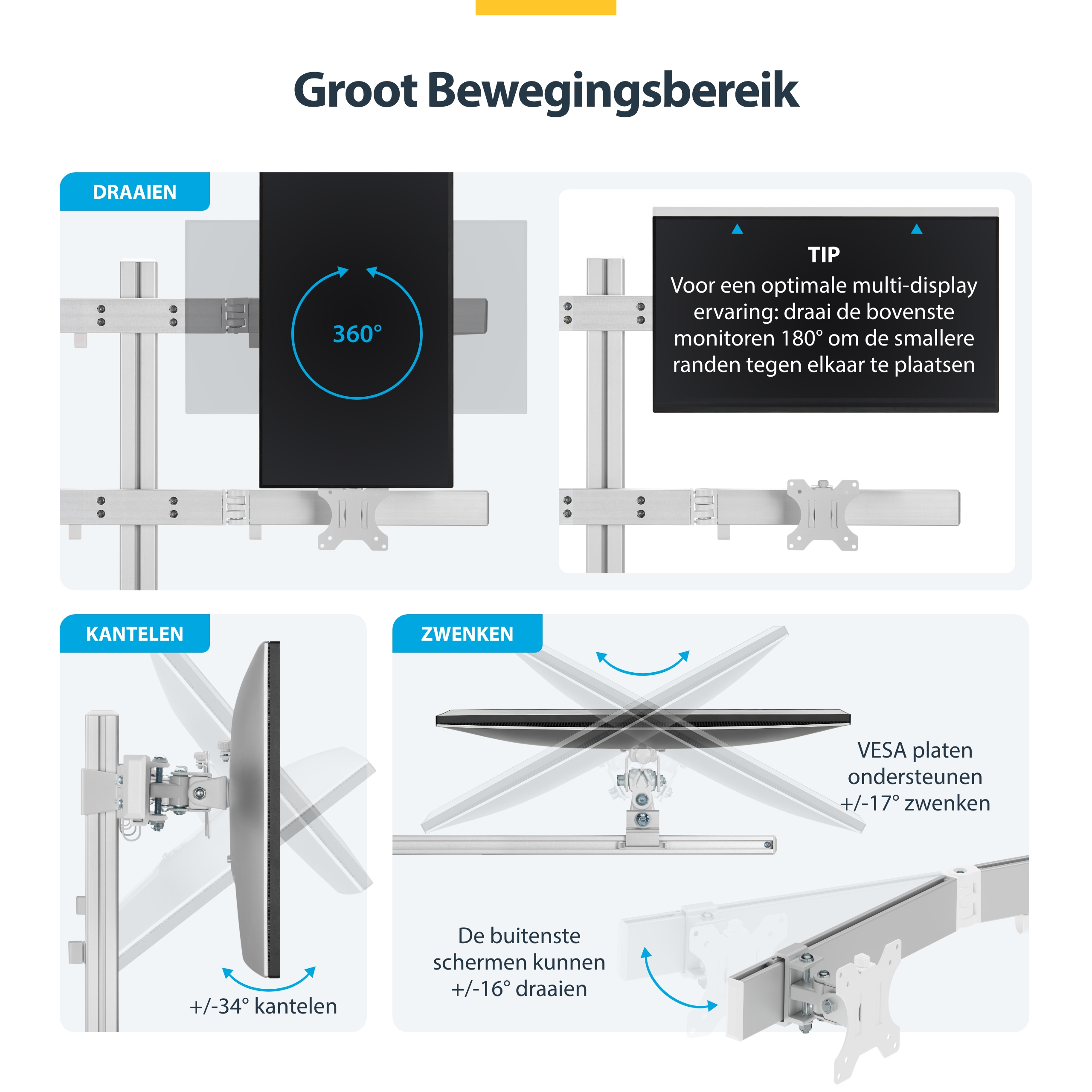 | – Maximale gewichtscapaciteit: 48 kg – Minimale schermgrootte: 43,2 cm (17″) Maximale schermgrootte: 81,3 cm (32″) – Aantal displays ondersteund: 6 – Klem/doorvoertule Montagewijze: Bureau – Montage interface compatibiliteit (max): 100 x 100 mm – In hoogte verstelbaar kantel aanpassingen – Verbeterd kabelbeheer – Aluminium, Kunststof, Staal Wit |