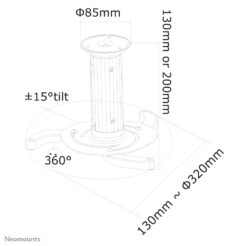 | – Plafond 15 kg Wit – In hoogte verstelbaar 130 – 200 mm – Draaihoek: 360° – Bereik kantelhoek: 0 – 30° |