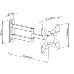 | – Maximale gewichtscapaciteit: 25 kg – Minimale schermgrootte: 48,3 cm (19″) Maximale schermgrootte: 94 cm (37″) Muur – Montage interface compatibiliteit (min): 75 x 75 mm Montage interface compatibiliteit (max): 200 x 200 mm – Aantal displays ondersteund: 1 – Zwart |