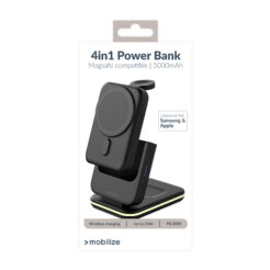 De Mobilize 4in1 Wireless Charger Station biedt de ultieme combinatie van gemak en functionaliteit. Met dit draadloze oplaadstation laad je tot drie apparaten tegelijkertijd op: je iPhone of Android-toestel, Apple Watch en Apple AirPods. Uniek aan deze lader is de afneembare powerbank van 5000mAh, waarmee je je apparaten ook onderweg draadloos of bedraad kunt opladen.