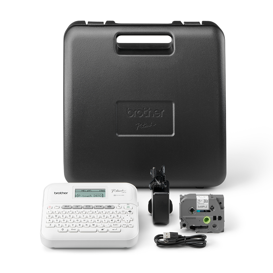 De PT-D410VP is een compacte, gebruiksvriendelijke labelprinter waarmee u binnen een handomdraai mooie, gelamineerde labels afdrukt om belangrijke mappen, planken, opbergdozen en andere items te personaliseren of apparatuur en kabels in het (thuis)kantoor gemakkelijk te kunnen herkennen.